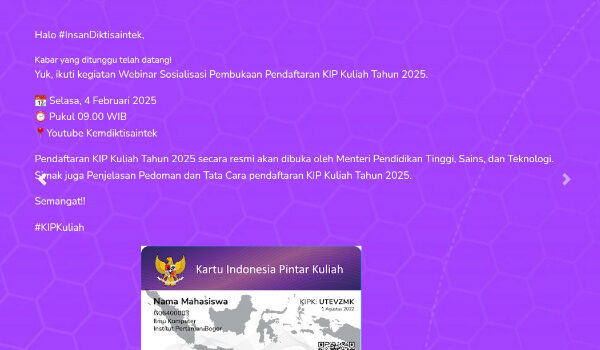 Untuk informasi lebih lanjut, masyarakat dapat mengakses laman resmi KIP-Kuliah di https://kip-kuliah.kemdiktisaintek.go.id/. (Cun)