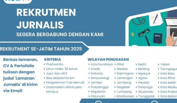 Netranews.co.id, – membuka kesempatan bagi putra-putri terbaik Jawa Timur untuk bergabung sebagai jurnalis melalui program rekrutmen resmi tahun 2025. Rekrutmen ini dibuka untuk berbagai wilayah penugasan di seluruh kabupaten/kota di Jawa Timur. Jumat, 14 November 2025.