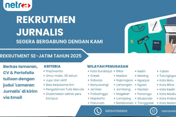 Dengan pembukaan rekrutmen ini, netranews.co.id berharap hadirnya jurnalis-jurnalis muda yang kompeten, berintegritas, dan siap memperkuat pemberitaan lokal di Jawa Timur. (red)